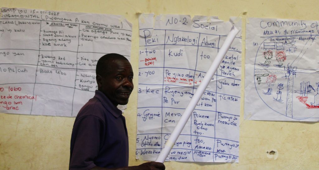 Under this pathway, FINASP has worked with communities in the three target districts of Dokolo, Alebtong and Lira to identify key social, economic, and environmental challenges. Among the social challenges raised were poor road networks, lack of clean water, and inadequate medical facilities. Economically, community members highlighted issues such as limited market access for produce, price fluctuations, and rising costs of seedlings. The communities also proposed potential solutions to these challenges.